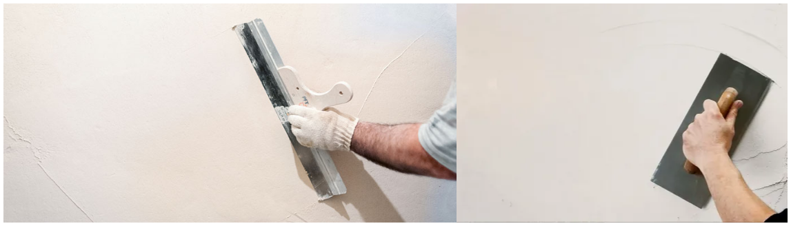 Нанесение слоев. Первый (стартовый) слой наносится широким шпателем и тщательно разравнивается. После высыхания его обрабатывают, чтобы убрать наплывы. Затем наносится финишная шпаклевка под обои толщиной 1-2 мм. Важно: каждый новый слой наносится только после полного высыхания предыдущего!